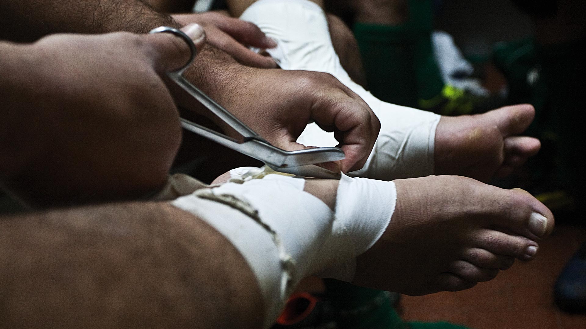 “Con las raciones podemos jugar. Sabemos que se puede” –dice Martín Sánchez después de hacerme pasar por el salón donde, antes del entrenamiento, les muestran a los rugbiers un video motivador–. “Como mucho, tendrán más o menos hambre. Con el agua no. Les pedimos que la traigan ellos. Hidratarse se tienen que hidratar.”