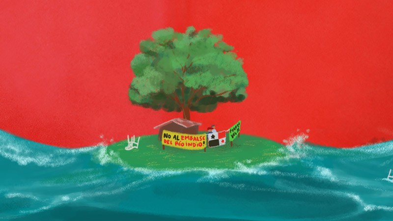 En la asamblea de la Coordinadora Campesina por la Vida contra los Embalses (CCCE) alguien lee en voz alta un folleto que cita leyes y estándares internacionales que harán posible su destierro. Todos se echan a reír. Se niegan a abandonar sus tierras. Uno de los líderes más jóvenes le cede la palabra a Carlos, quien llegó como estudiante de sociología hace ocho años a estas comunidades y hoy las acompaña como un aliado más. Los campesinos acuerdan volver a cerrar calles en señal de protesta. Carlos les “traduce” normas y códigos que aparecen en el folleto. Conoce la jerga y la letra chica: llegó a Río Indio como empleado del Canal para hacer los informes de impacto ambiental y gestionar por la licencia social. Pero se acercó tan genuinamente a la población que terminó renunciando a ese trabajo y compartiendo como uno más.