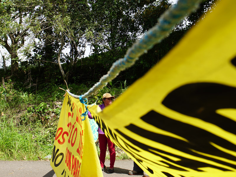 Carlos sube al camión de campesinos donde cargan un cooler repleto de huesos de res. A esta hora de la madrugada, el asfalto es una cicatriz negra que cruza potreros, cultivos y bosques a orillas del Río Indio, unos 75 kilómetros al noroeste de la ciudad de Panamá. Carlos alza la voz y reza cuando se acercan a la calle que une tres comunidades, imaginando cómo antes del amanecer los que no quieren dejar estas tierras bajarán a cerrarla. Hace unos días el gobierno reprimió varias protestas en contra de reformas a la seguridad social, por lo que a Carlos le preocupa un choque con la policía.