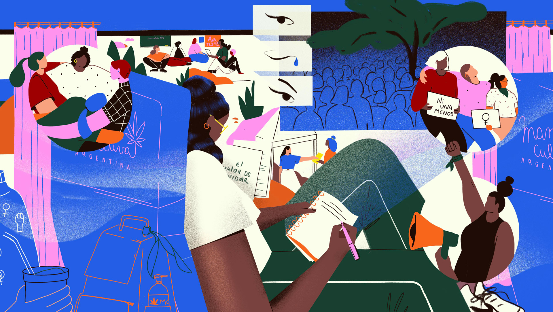 Mujeres de distintos lugares, diferentes culturas, clases sociales, edades y territorios, se identificaban unas con otras al hablar de cuidados. En el aula iba creciendo la urgencia, el enojo y el deseo de despertar a otras. Íbamos cumpliendo nuestro objetivo: que cada vez más cuidadoras se reconozcan en la estafa y debatan con otras cómo “sacar a los cuidados del closet". Aparecía a modo de reclamo que los cuidados tienen que ser prioridad en la agenda feminista, porque “ésto sólo podemos cambiarlo nosotras”. Con “esto” nos referíamos al enojo de saber que el mundo vive a costa de nuestros cuerpos. Que reproducimos y sostenemos la vida que será o fue mano de obra de otros, sin más reconocimiento que una palmada en la espalda.