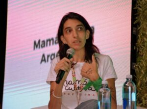 Con nuestra Guía en mano, nosotras elegimos tres: el Taller 51: ¿De qué hablamos cuando hablamos de cuidados?, el 52: Ciudades feministas, sociedad del cuidado e interseccionalidad y el 59: Salud mental desde una mirada integral, social y comunitaria. Una de nosotras se quedó en el gazebo de Mamá Cultiva que instalamos en el Parque Camba Cua, repartiendo folletos y contestando preguntas.