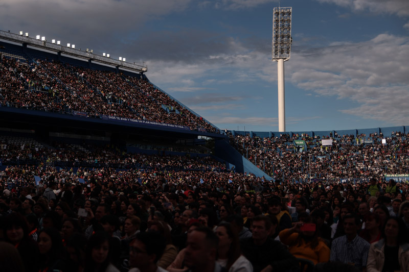 El pastor dice que el día que aterrizó fue a ver al Presidente. Habla en inglés y casi ninguna de las cuarenta mil personas que escuchan a sus pies lo entiende. Dice que le regaló una Biblia. Cuando el traductor, parado a su lado —los dos detrás de un imponente atril negro con una cruz dorada en el centro del escenario— repite sus palabras en español, el estadio de Vélez estalla en aplausos y vítores.