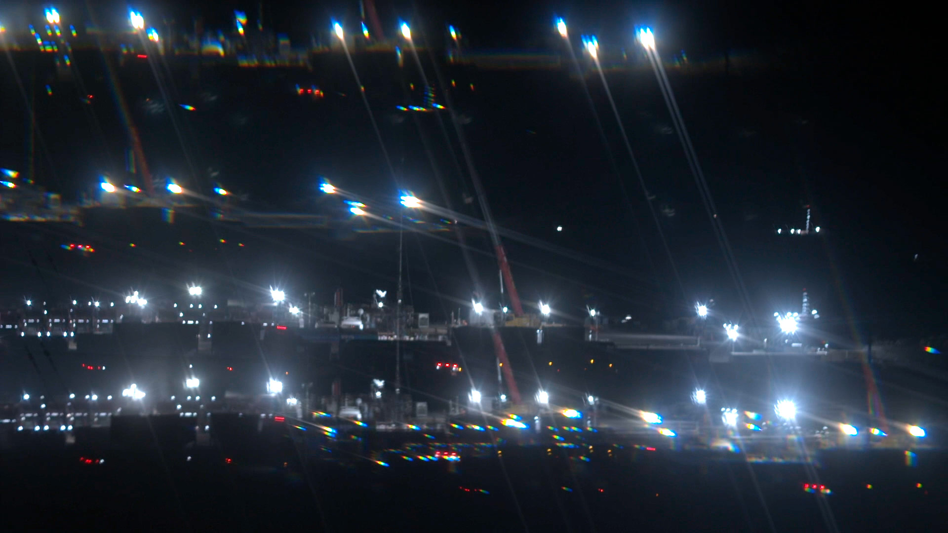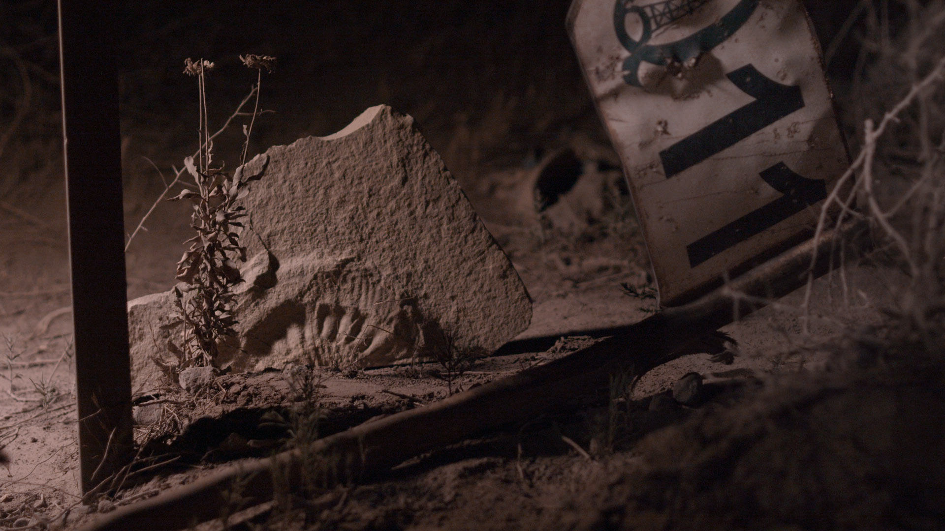 Durante sesenta minutos, las pantallas transmitirán imágenes del territorio conocido hacia afuera como Vaca Muerta: planos fijos de la meseta, rocas, montañas, animales (vacas lecheras, cabras, caballos, zorritos, liebres, ñandúes, gatos, un pavo real), paredes rajadas, garrafas, hornallas prendidas, un cementerio, plantas. Polvo. Un skyline de plataformas industriales. Camiones. Camiones. Camiones. Predominan las tomas nocturnas en las que lo único que se mueve son puntitos blancos que van y vienen, las luces de una circulación que nunca duerme. Y lenguas de fuego que duran segundos hasta transformarse en nube negra y desaparecer, escupidas por unas chimeneas finas y largas, los “mecheros”.