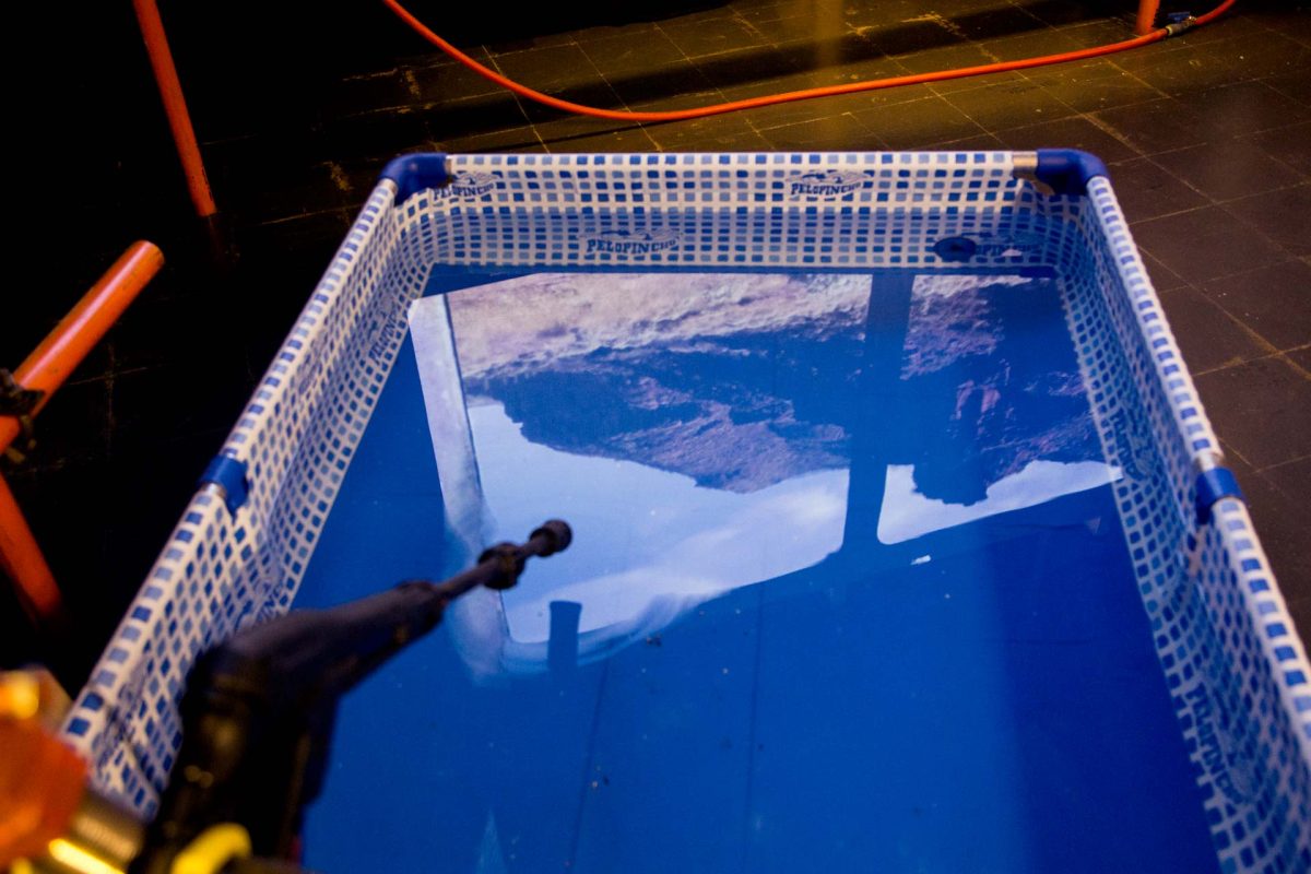 Escenas sutiles para representar una operación tan cuantificable como imposible de dimensionar a escala humana. Se trata del agua dulce de los ríos Neuquén, Limay y Colorado, cada vez más flacos por la escasez de lluvia y nevadas. De ellos se extraen enormes volúmenes para el proceso de fractura de la roca: cada pozo puede emplear entre 80 y 100 millones de litros del agua local, algunos hasta 120 millones. Una de las imágenes que referencia la obra es cuando la empresa transportadora de petróleo Oldelval en 2021 usó una Pelopincho de lona para intentar controlar un derrame. Pero la afectación al agua que no es visible es la que queda debajo de la tierra, contaminada con químicos y arena. En Pelopinchos serían 200 mil para cada pozo y, al día de la fecha, se estima que hay unos tres mil pozos ya fracturados por el entramado petrolero-gasífero del fracking.