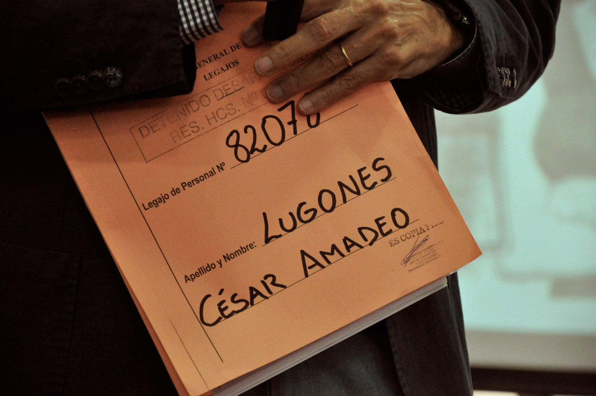 Mario esperó su turno algo inquieto y un tanto apesadumbrado, aunque no era la primera vez que participaba de un homenaje así. Sentía algo distinto, indescifrable. Se encontraba en un lugar totalmente ajeno para protagonizar un hecho de suma intimidad. En cuanto lo llamaron, se acomodó el saco azul petróleo, respiró hondo y se preparó para que le entregaran el legajo de su hermano César Amadeo Lugones.