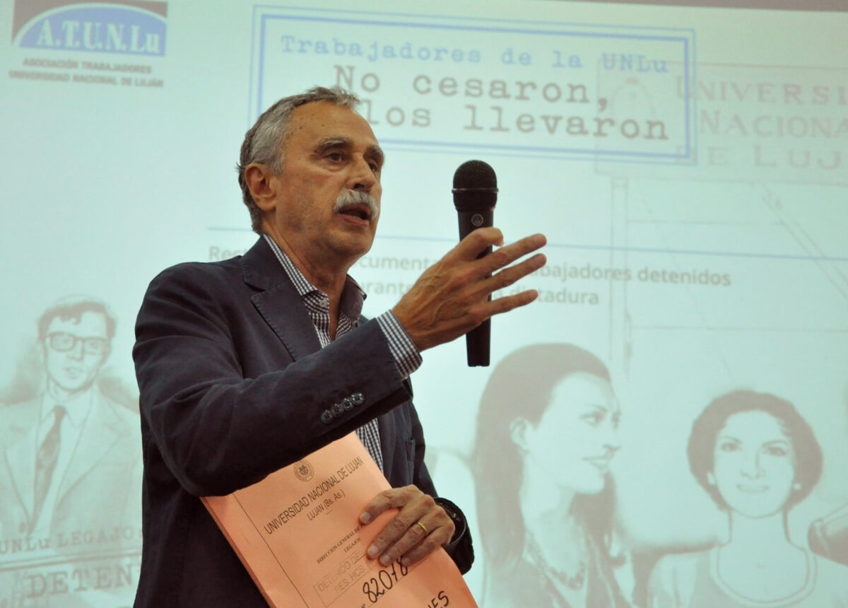 “No cesaron, se los llevaron”, escuchó Mario sentado en una silla al lado de José, a quien le palmeó la pierna varias veces, como una muestra de cariño. La frase retumbó en ese cuarto durante toda la mañana. La Asociación de Trabajadores de la UNLU había elegido ese lema para homenajear a los seis trabajadores de la universidad que fueron detenidos y desaparecidos durante la última dictadura cívico militar. Ninguno de ellos había abandonado su trabajo. Dejaron de ir porque los secuestraron. Y era el momento de rectificar sus legajos.