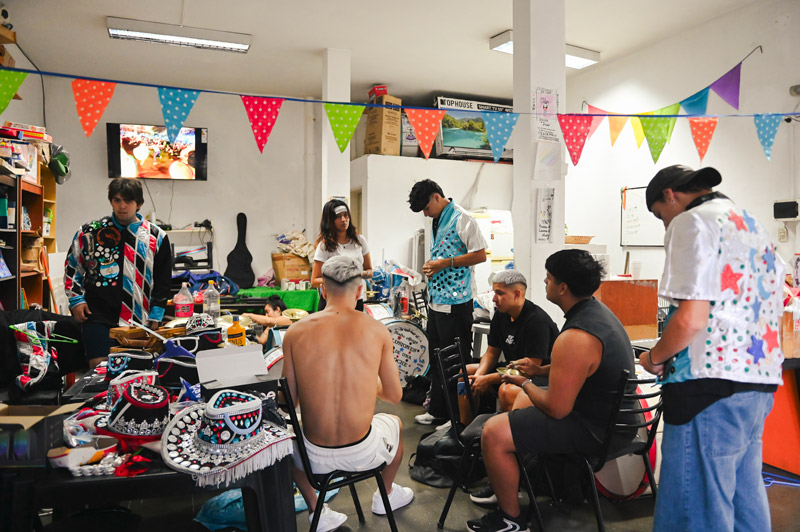 “Existe ese prejuicio de que el murguero es un negro cabeza que no estudia ni trabaja —dice Stella ‘la Peque’ Cabañas, de veintiocho años y una personalidad fuerte que asoma enseguida—, pero hay gente con título, gente sin trabajo, gente que gana fortunas y otros que no tienen para comer. Las puertas están abiertas. Lo que buscamos es que sea un círculo de contención”. La Peque es directora de percusión y directora general junto con el Tonga. Además, enfermera y empleada de un call center. Entró porque le insistieron las amigas. Primero, por edad, fue premurguera. Después se enganchó con la percusión. Algo poco usual: por lo general, los percusionistas son hombres. “Como directora, me fijo que todos tengan su bombo, que puedan tocar, que aprendan su ritmo —dice en su casa, rodeada de apliques con los que decorará su vestuario y el de sus compañeros—. Pero además acompaño, escucho, sé qué les pasa a los demás. Si alguien no aparece por mucho tiempo, se lo busca. Si hay un problema entre dos integrantes, se intercede. Sería algo así como la tía copada”.
