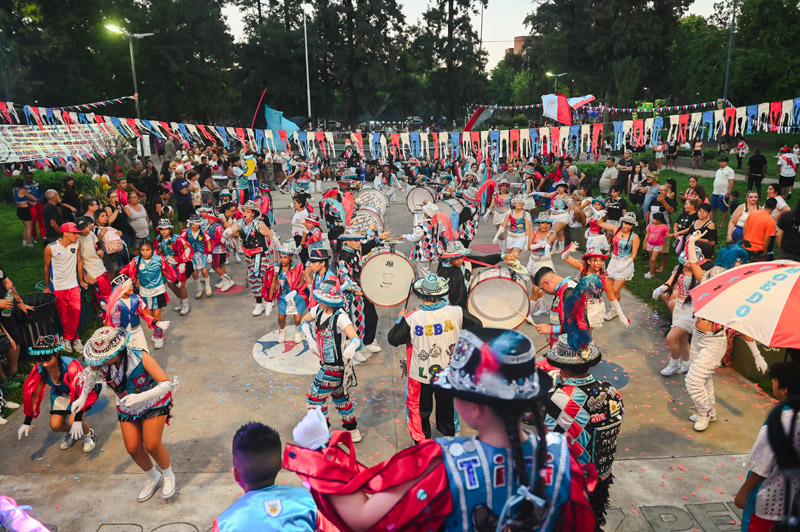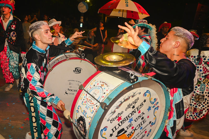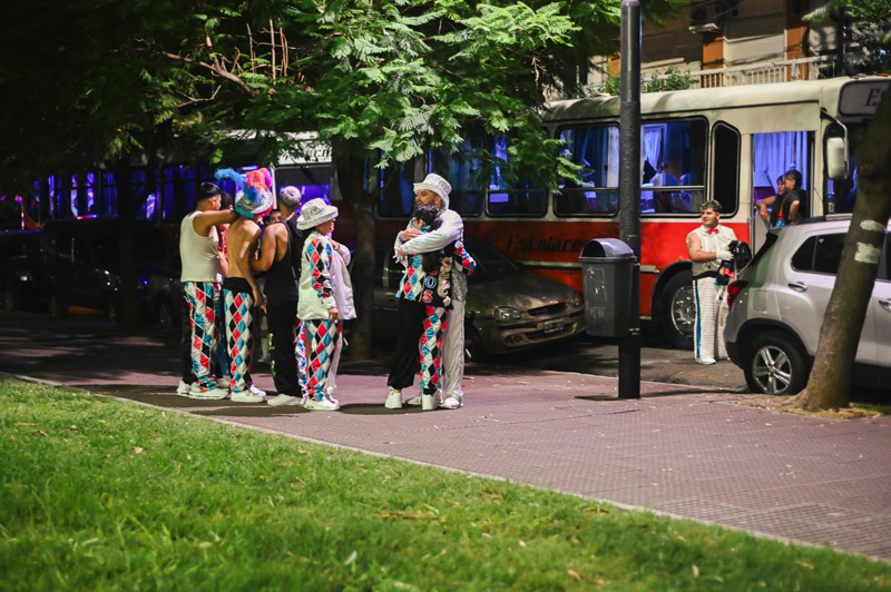 Gastón “el Tonga” Vassallo tiene cuarenta y un años y es el director general de la asociación civil Ilusiones de una noche, que ya supera las dos décadas de vida. “Vomitar arte”, dice sentado en lo alto del anfiteatro de la plaza Mariano Boedo, atento a cada detalle, y aclara que usa esa palabra por la “virulencia” de haber transitado la juventud en los noventa. Me cuenta que estaba vivo cuando mataron a Walter Bulacio y recuerda cuando lo agarraron entre cuatro policías y le pegaron. “Esto es una expresión artística, pero es también una revancha de lo que nos pasa como pueblo”. Mientras a nuestro alrededor los murgueros y las murgueras se bambolean con sus pasos, es fácil imaginar la bronca contenida que hubo detrás de esa alegría.