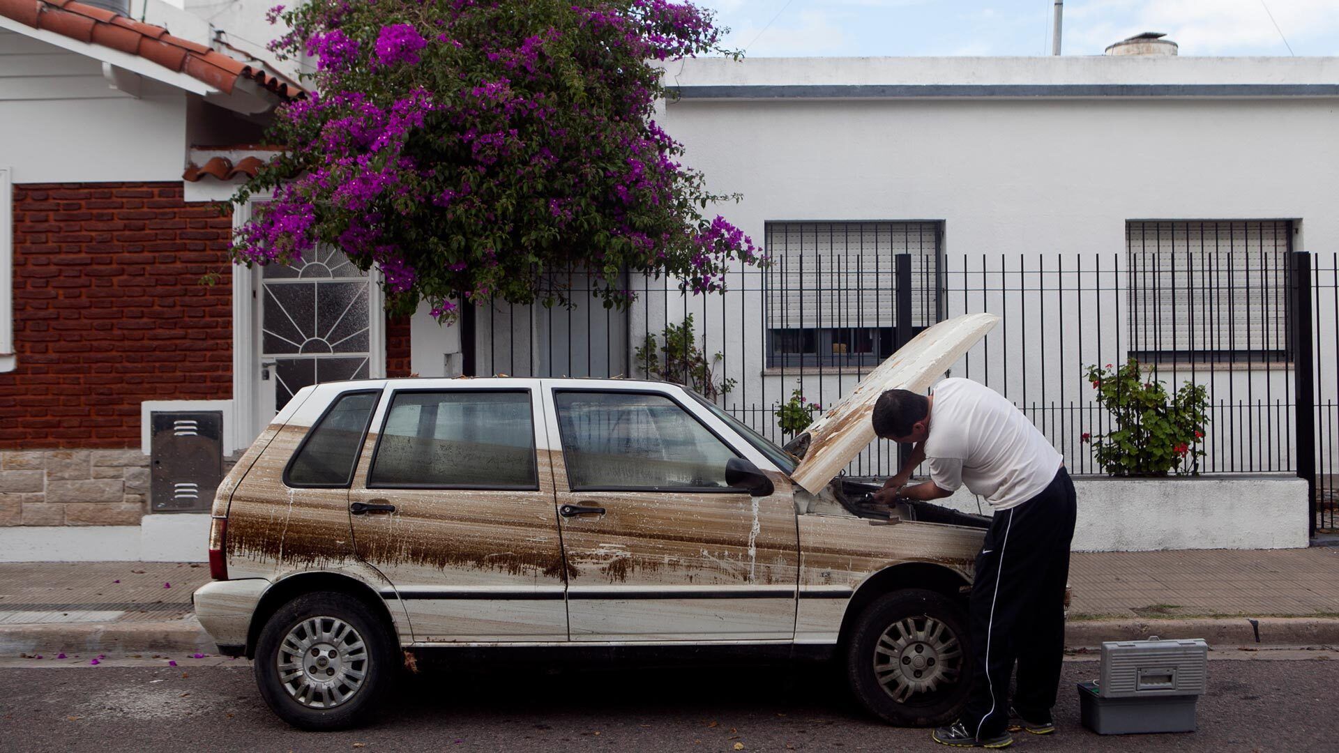 A las once de la noche del miércoles, cuando el segundo diluvio sobre La Plata llevaba una hora, perdió contacto con su familia. Ya no había luz. El teléfono no mandaba mensajes, las llamadas no entraban. Minutos después el agua empezó a filtrarse por el garaje. Y de ahí al comedor, la cocina, el baño, las dos habitaciones. No lo recuerda con precisión, pero calcula que antes de la una de la mañana el agua ya pasaba el medio metro. Muñoz arrastró una mesa cerca de una ventana que da a la calle y se sentó arriba a esperar. Cada tanto escuchaba algún grito lejano. Cuando amaneció salió a la vereda. El agua le llegaba a las rodillas. No recuerda lo que habló con los vecinos que como él, salieron con la primera luz del día. Recuerda haber visto, en la vereda de enfrente, hacia el lado del bulevard 32, familias subidas a los techos y algunos autos montados uno sobre otro. Ya en su casa, escribió en una hoja de espiral el cálculo de las pérdidas. En cada charla, la saca del bolsillo del jogging y la muestra.