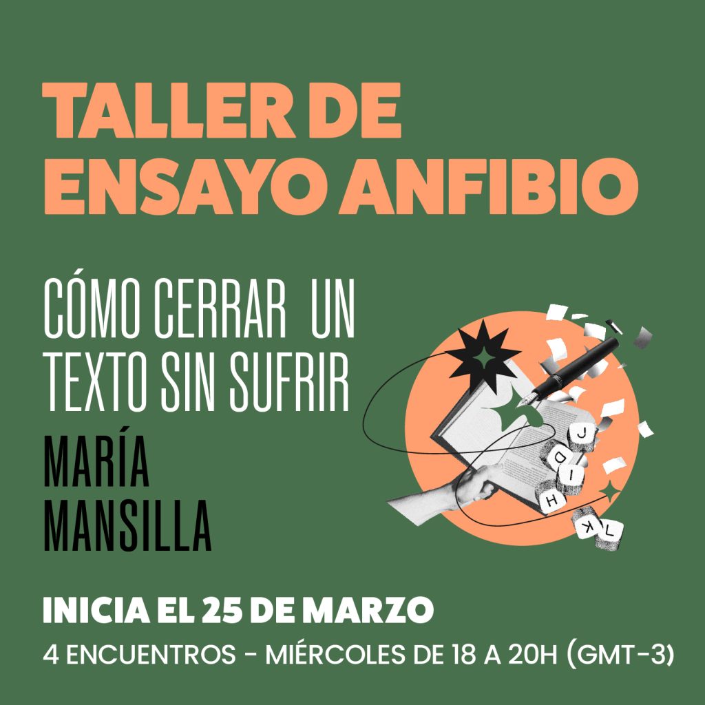 En el taller de ensayo anfibio compartiremos herramientas para escribir, como diría Stephen King, “con la puerta abierta”. Para practicar el autocuidado de nuestros textos en ese momento único y crucial en el que nos toca preocuparnos porque nos lean, nos entiendan, nos sepan coherentes, nos amen.