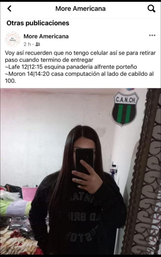 Habían vendido ropa juntas. Compraban bolsones en la calle Avellaneda, también en el barrio de Flores. Tres cargaba ella y otros tres Morena. Hacían la entrega de la mercadería en la feria de la Universidad de Morón. En el último tiempo Sabrina, que tiene 43 años, trabajaba cuidando a una señora en Villa Luro, algo que hizo toda su vida. Estaba doce horas afuera de su casa. Cuando volvía de noche, Morena ya se había ido y su hermana menor, Jana, respondía por ella con resignación: “Me dijo que ya volvía”. Su hijo varón tampoco estaba porque salía a vender al interior.