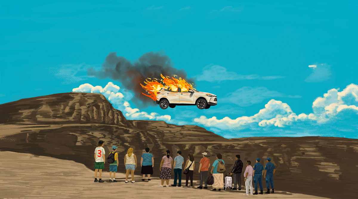 También ayuda a paralizar el tránsito de autos y camiones Stella Maris “Beba” Castro, la mamá de Lara. Ponen restos de autos, troncos y neumáticos para cortar el paso. Son menos de 20 personas pero logran frenar la circulación. En los guardarrail cuelgan banderas con los nombres de las chicas pidiendo justicia. No dejan pasar a nadie, ni a quienes llegan hasta ahí y les anuncian que viven en el barrio. Cuando el sol se esconda, prenderán fuego algunas gomas que arderán con furia. La interrupción de tránsito durará hasta las tres de la mañana.